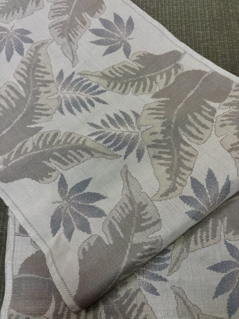 新柄織り上がりました。白南風『ヤツデと芭蕉』