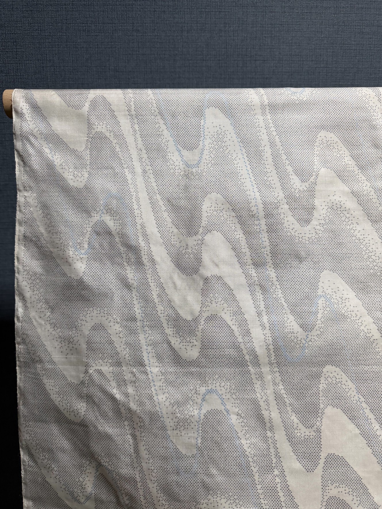 摺り込み染色のネズ濃淡で川の流れを表現しました。